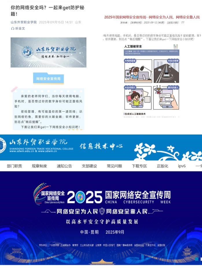 此次国家网络安全宣传周活动的成功举办,不仅提升了师生的网络安全意识,增强了网络安全风险的识别与防范能力,更在校园内营造了“人人关注网络安全、人人参与网络安全”的浓厚氛围,学院将以此活动为契机,持续推进网络安全体系建设,不断完善技术防护手段、创新教育宣传形式,积极应对人工智能等新技术带来的安全挑战,为校园网络安全提供坚实保障,助力学院高质量发展。
